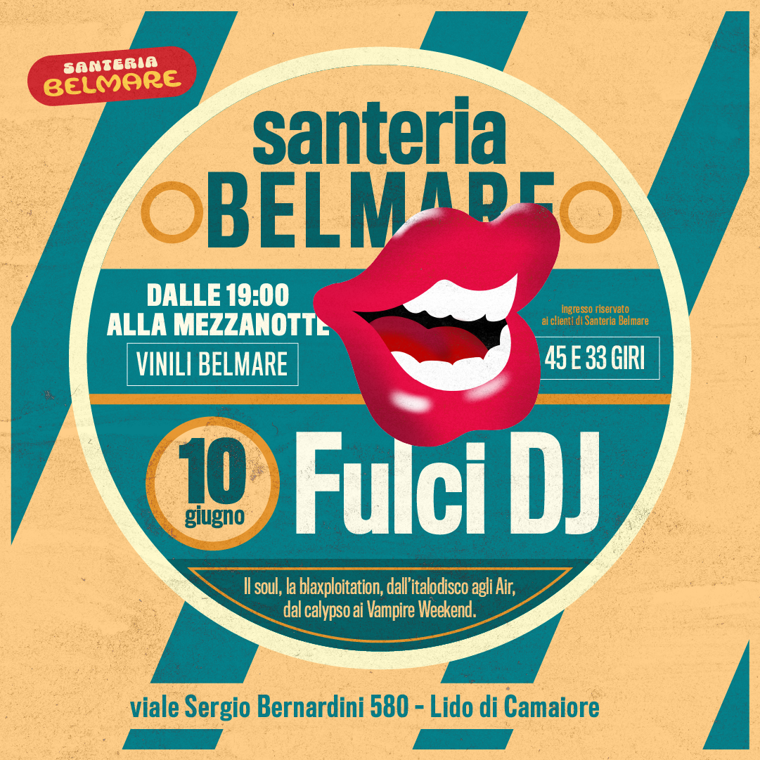 Ogni sabato la Terrazza di Santeria Belmare prende vita con un dreamy dj set. Sabato 10 giugno sarà la prima volta di Vinili Belmare: la selection di 45 e 33 giri di Fulci Dj in collaborazione con la Limonaia di Fucecchio. Un format che mensilmente verrà a trovarci e farà viaggiare i propri dischi su binari musicali eterogenei, fermandosi nelle stazioni del Soul, dell’italodisco e del calypso, percorrendo la tratta che collega le colonne sonore di Morricone alle sonorità attuali. Dal tramonto al chiar di luna, un mix inaspettato per un’estate che ha in serbo tante sorprese.