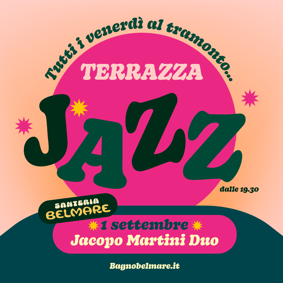 L’appuntamento fisso del venerdì è in Terrazza per una serata all’insegna del jazz. Ogni settimana una band diversa che accompagnerà l’aperitivo della golden hour a Santeria Belmare.