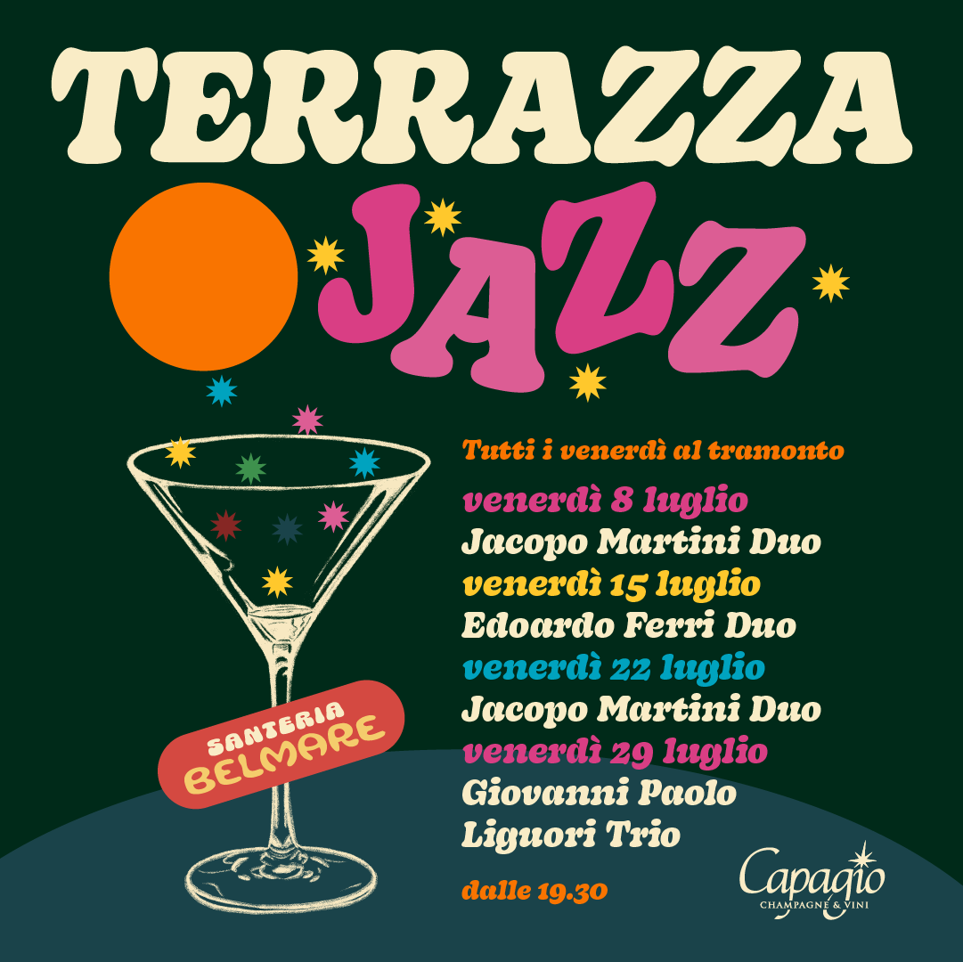 Tutti i venerdì una serata Jazz in Terrazza tra musica, drink e vista litorale.
